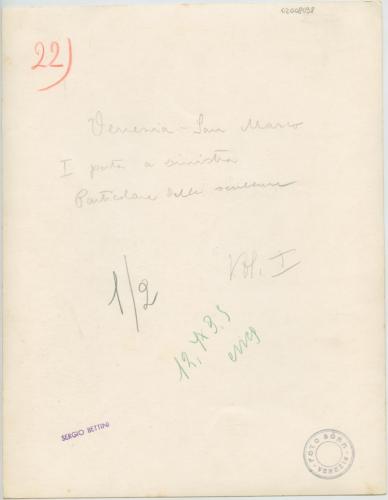 - ISCRIZIONI supporto primario: verso: in alto - Venezia San Marco/ I porta a sinistra/ particolare della scultura - a matita -