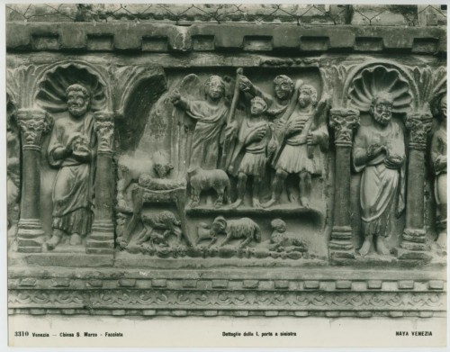 - ISCRIZIONI supporto primario: recto: in basso - 3310 Venezia - Chiesa S. Marco - Facciata. Dettaglio della I. porta a sinistra. NAYA VENEZIA - a matita -