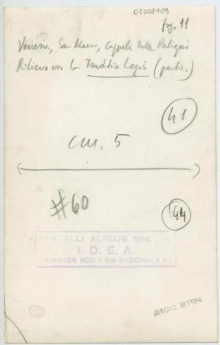 - ISCRIZIONI supporto primario: verso: in alto - fig. 11/ Venezia, San Marco, Cappella delle Reliquie/ Rilievo con la Traditio Legis (partic.) - a matita -