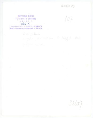 - ISCRIZIONI supporto primario: recto: in basso - 3324 Venezia. Chiesa S. Marco - Interno. L'Angelo del grande pulpito. NAYA VENEZIA - a matita -