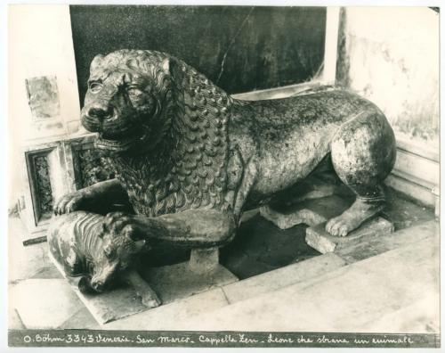 - ISCRIZIONI supporto primario: recto: in basso - O. Böhm 3343 Venezia. San Marco. Cappella Zen. Leone che sbrana un animale - a matita -