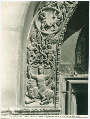 - ISCRIZIONI supporto primario: recto: in basso - (Ed.ne Alinari) N.° 20657. VENEZIA - Basilica di San Marco. Un particolare dell'esterno del primo sopr'arco (XIII secolo.) - a matita -