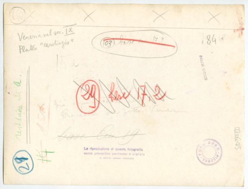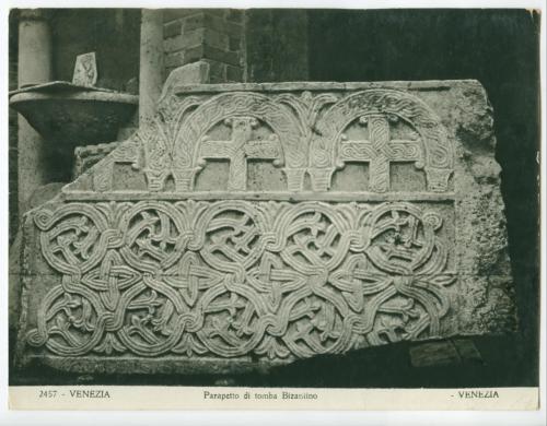 - ISCRIZIONI supporto primario: recto: in basso - 2457 - VENEZIA. Parapetto di tomba Bizantino - VENEZIA - a matita -