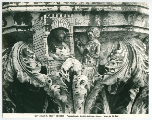 - ISCRIZIONI supporto primario: recto: in basso - (Ed.ne Alinari) N.° 38787. VENEZIA - Palazzo Ducale. Capitello dell'Amore Umano. (Ignoto del XV. Sec.) - a matita -
