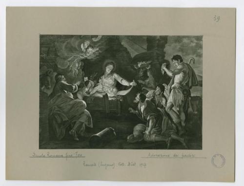 - NOTIZIE STORICO CRITICHE La fotografia, che riproduce l'Adorazione dei pastori di Scuola romana della fine del Settecento, fa parte dell'insieme archivistico denominato "Collezione Züst" (due cartelle: C. XI e C. XII), nello specifico, è conservata all'interno della cartella C. XI. Trattasi del frutto dello studio condotto da Antonio Morassi sulla collezione di Giovanni Züst nel 1957. La fotografia è montata su cartoncino. Un altro esemplare della medesima fotografia si trova nella cartella C. XI (inv. C.1646).