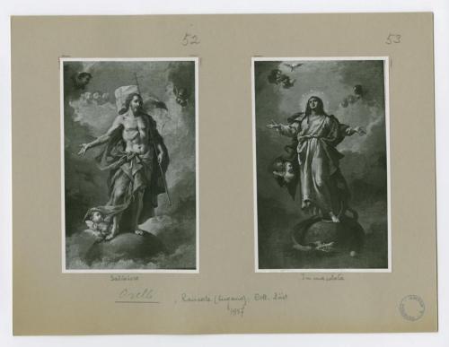 - NOTIZIE STORICO CRITICHE La fotografia, che riproduce il Salvatore dipinto da Giuseppe Antonio Orelli (1706-1774) secondo Antonio Morassi, fa parte dell'insieme archivistico denominato "Collezione Züst" (due cartelle: C. XI e C. XII), nello specifico, è conservata all'interno della cartella C. XI. Trattasi del frutto dello studio condotto da Antonio Morassi sulla collezione di Giovanni Züst nel 1957. Nello stesso cartoncino è montata una ripresa fotografica dell'Immacolata dipinta dal medesimo autore (inv. C.1700).