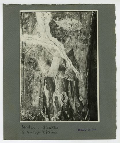- ISCRIZIONI supporto secondario: recto: in basso a sinistra - Mistrà. Afendiko/ S. Ambrogio di Milano - a matita -