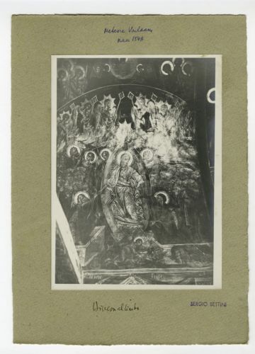 - NOTIZIE STORICO CRITICHE Gli affreschi nella chiesa del monastero di Varlaam furono realizzati nel 1548 - data riportata nell'epigrafe - da Teofane da Creta, come suggerito da Sergio Bettini (1950, p. 341). Alle pareti e nelle volte sono raffigurate le dodici feste, oltre a santi e profeti; nella tribuna a sinistra la Crocefissione e il Battesimo di Gesù; nella cupola Cristo Pantocrator fra angeli e profeti, mentre i quattro Evangelisti occupano i pennacchi. Nell'abside sono affrescati la Madonna, la Divina Liturgia e i santi gerarchi.