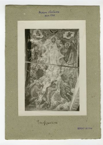 - NOTIZIE STORICO CRITICHE Gli affreschi nella chiesa del monastero di Varlaam furono realizzati nel 1548 - data riportata nell'epigrafe - da Teofane da Creta, come suggerito da Sergio Bettini (1950, p. 341). Alle pareti e nelle volte sono raffigurate le dodici feste, oltre a santi e profeti; nella tribuna a sinistra la Crocefissione e il Battesimo di Gesù; nella cupola Cristo Pantocrator fra angeli e profeti, mentre i quattro Evangelisti occupano i pennacchi. Nell'abside sono affrescati la Madonna, la Divina Liturgia e i santi gerarchi.