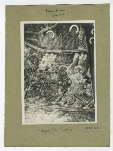 - NOTIZIE STORICO CRITICHE Gli affreschi nella chiesa del monastero di Varlaam furono realizzati nel 1548 - data riportata nell'epigrafe - da Teofane da Creta, come suggerito da Sergio Bettini (1950, p. 341). Alle pareti e nelle volte sono raffigurate le dodici feste, oltre a santi e profeti; nella tribuna a sinistra la Crocefissione e il Battesimo di Gesù; nella cupola Cristo Pantocrator fra angeli e profeti, mentre i quattro Evangelisti occupano i pennacchi. Nell'abside sono affrescati la Madonna, la Divina Liturgia e i santi gerarchi.