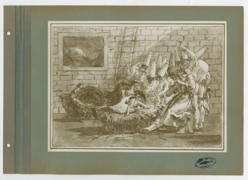 - NOTIZIE STORICO CRITICHE Il disegno è firmato da Giandomenico Tiepolo in basso a destra. Nella fotografia non è visibile il numero "1" presente nell'angolo in alto a sinistra del margine del disegno (Gealt 1986, p. 28).