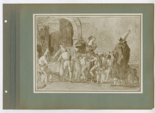 - NOTIZIE STORICO CRITICHE Il disegno è firmato da Giandomenico Tiepolo in basso a destra. Nella fotografia non è visibile il numero "17" presente nell'angolo in alto a sinistra del margine del disegno (Gealt 1986, p. 34).