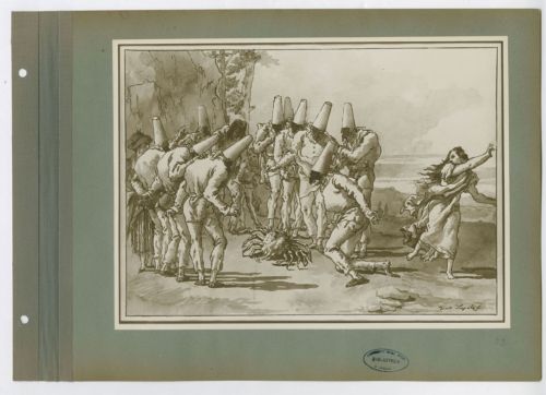 - NOTIZIE STORICO CRITICHE Il disegno è firmato da Giandomenico Tiepolo in basso a destra. Nella fotografia non è visibile il numero "23" presente nell'angolo in alto a sinistra del margine del disegno (Gealt 1986, p. 78).