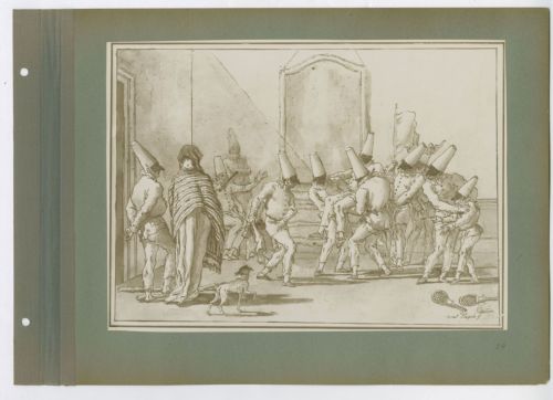 - NOTIZIE STORICO CRITICHE Il disegno è firmato da Giandomenico Tiepolo in basso a destra. Nella fotografia non è visibile il numero "24" presente nell'angolo in alto a sinistra del margine del disegno (Gealt 1986, p. 60).