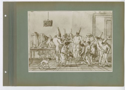 - NOTIZIE STORICO CRITICHE Il disegno è firmato da Giandomenico Tiepolo sul bordo del tavolo a sinistra. Nella fotografia non è visibile il numero "25" presente nell'angolo in alto a sinistra del margine del disegno (Gealt 1986, p. 62).