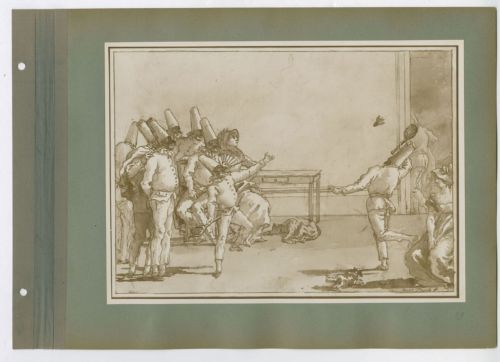 - NOTIZIE STORICO CRITICHE Il disegno è firmato da Giandomenico Tiepolo in basso a destra. Nella fotografia non è visibile il numero "29" presente nell'angolo in alto a sinistra del margine del disegno (Gealt 1986, p. 58).