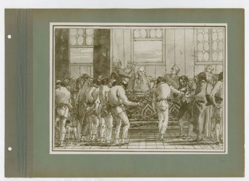 - NOTIZIE STORICO CRITICHE Il disegno è firmato da Giandomenico Tiepolo in basso a destra. Nella fotografia non è visibile il numero "35" presente nell'angolo in alto a sinistra del margine del disegno (Gealt 1986, p. 102).