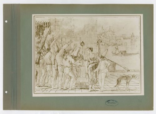 - NOTIZIE STORICO CRITICHE Il disegno è firmato da Giandomenico Tiepolo in basso a sinistra. Nella fotografia non è visibile il numero "36" presente nell'angolo in alto a sinistra del margine del disegno (Gealt 1986, p. 104).
