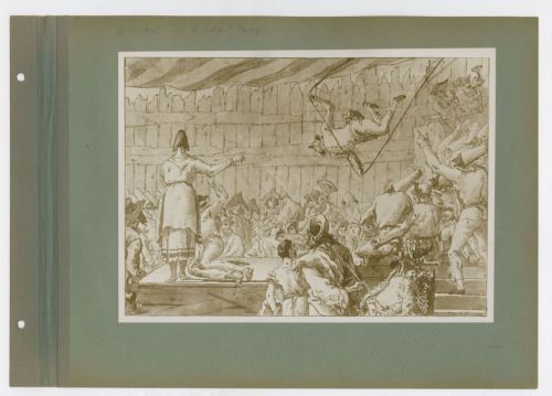 - NOTIZIE STORICO CRITICHE Il disegno è firmato da Giandomenico Tiepolo in basso a sinistra. Nella fotografia non è visibile il numero "46" presente nell'angolo in alto a sinistra del margine (Gealt 1986, p. 86).
