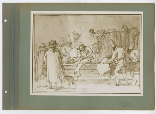 - NOTIZIE STORICO CRITICHE Il disegno è firmato da Giandomenico Tiepolo in basso a sinistra. Nella fotografia non è visibile il numero "55" presente nell'angolo in alto a sinistra del margine (Gealt 1986, p. 124).