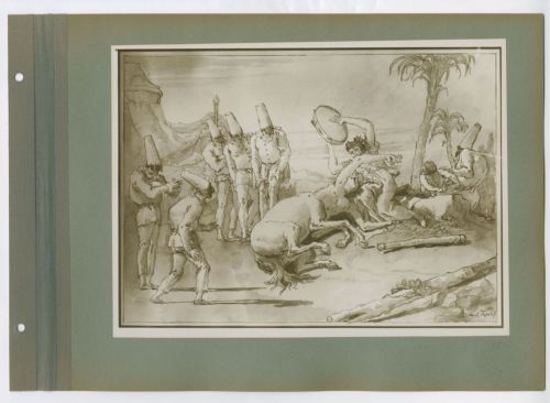 - NOTIZIE STORICO CRITICHE Il disegno è firmato da Giandomenico Tiepolo in basso a sinistra. Nella fotografia non è visibile il numero "69", o più probabilmente "59", presente nell'angolo in alto a sinistra del margine (Gealt 1986, p. 136).