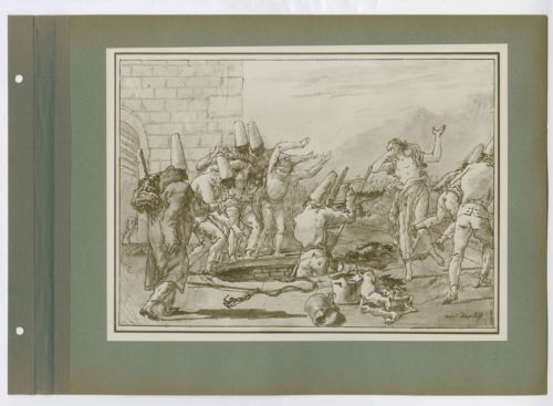 - NOTIZIE STORICO CRITICHE Il disegno è firmato da Giandomenico Tiepolo in basso a destra. Nella fotografia non è visibile il numero "83", modificato forse in "88", presente nell'angolo in alto a sinistra del margine (Gealt 1986, p. 38).