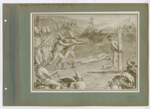 - NOTIZIE STORICO CRITICHE Il disegno è firmato da Giandomenico Tiepolo in basso al centro. Nella fotografia non è visibile il numero "97" presente nell'angolo in alto a sinistra del margine (Gealt 1986, p. 166).