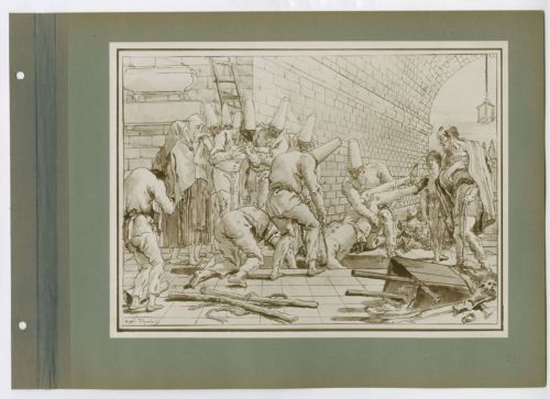 - NOTIZIE STORICO CRITICHE Il disegno è firmato da Giandomenico Tiepolo in basso a sinistra. Nella fotografia non è visibile il numero "103" presente nell'angolo in alto a sinistra del margine (Gealt 1986, p. 176).
