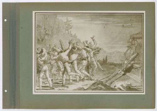 - NOTIZIE STORICO CRITICHE Il disegno è firmato da Giandomenico Tiepolo in basso a destra. Nella fotografia non è visibile il numero "103" presente nell'angolo in alto a sinistra del margine (Gealt 1986, p. 178).