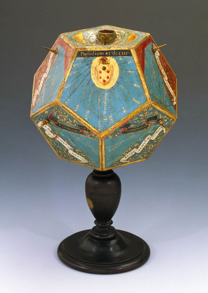 Strumento a forma di dodecaedro regolare, miniato e finemente decorato con colori brillanti. Ogni faccia del poliedro è segnata da un tipo diverso di orologio solare (a tazza, verticale o declinante) completo di gnomone. Nell'incavo superiore è presente un piccolo alloggiamento che ospitava una bussola (oggi mancante) per orientare lo strumento verso il meridiano magnetico locale. Su una faccia del poliedro si trova anche lo stemma della famiglia de' Medici.