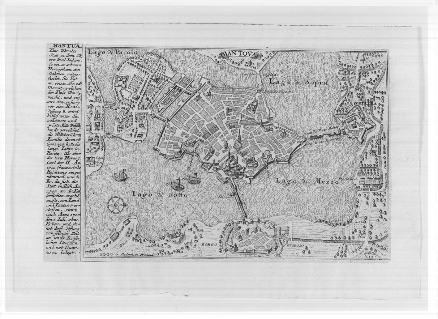 Pianta di Mantova e dei dintorni (stampa, serie) di Merian Matthaus il Vecchio, Bodenehr Gabriel il Vecchio, Bertazzolo Gabriele (sec. XVIII)