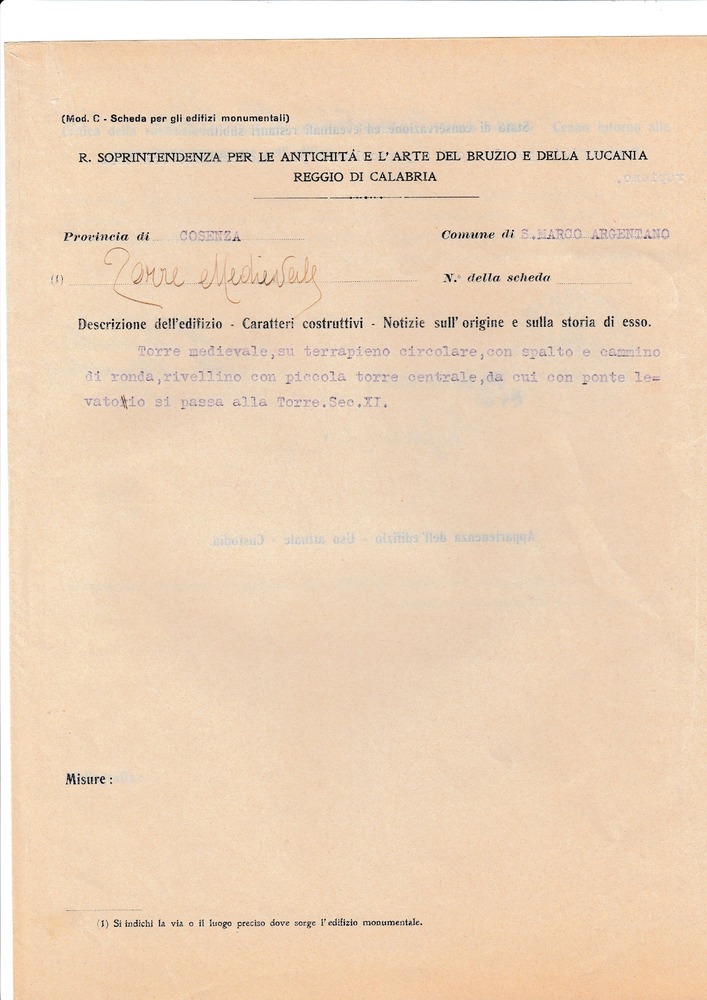 Autore non identificato, Torre di Dragone il Normanno, San Marco Argentano (CS) - Calabria, XI - XIX secolo, 1800110204