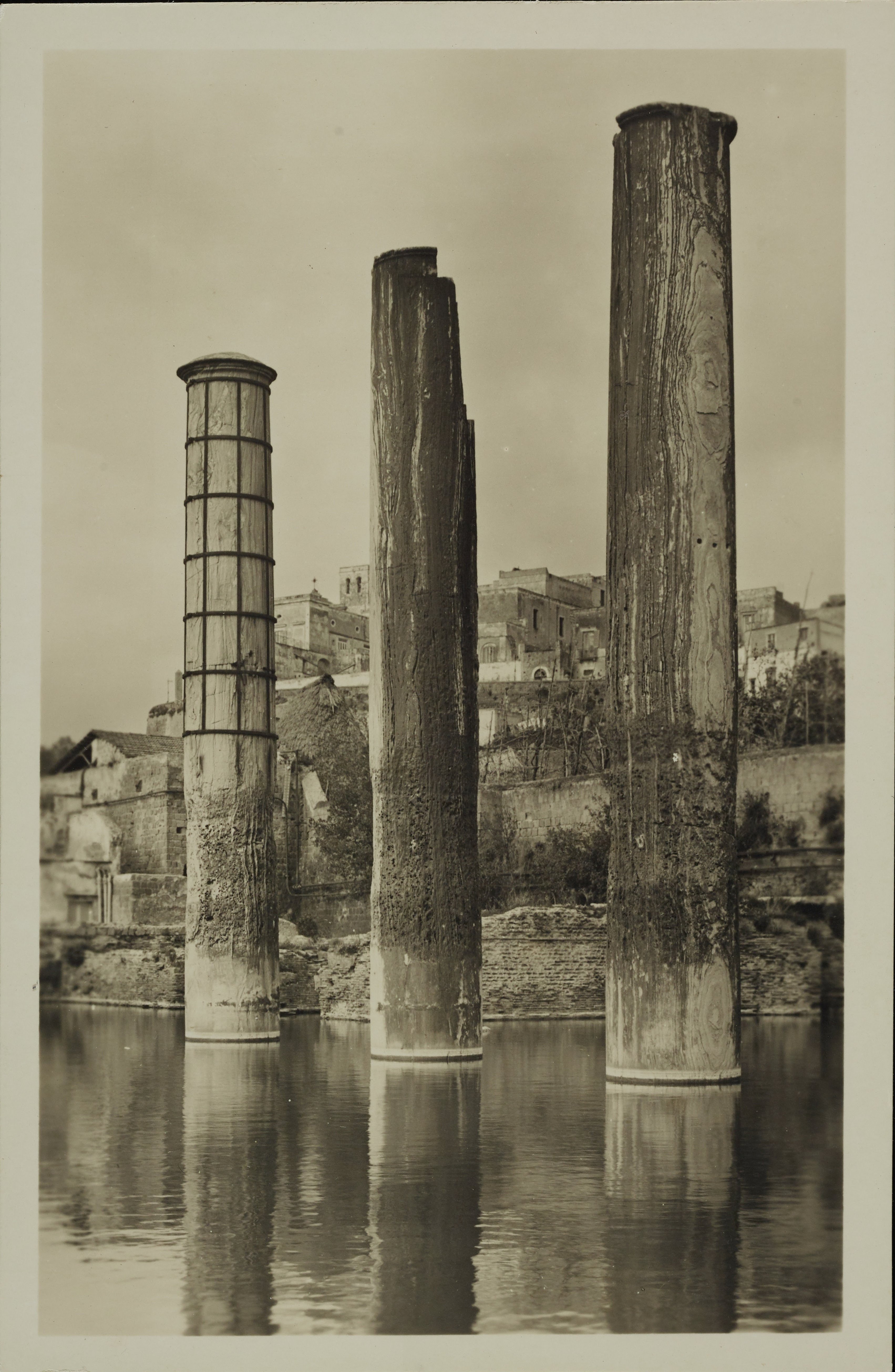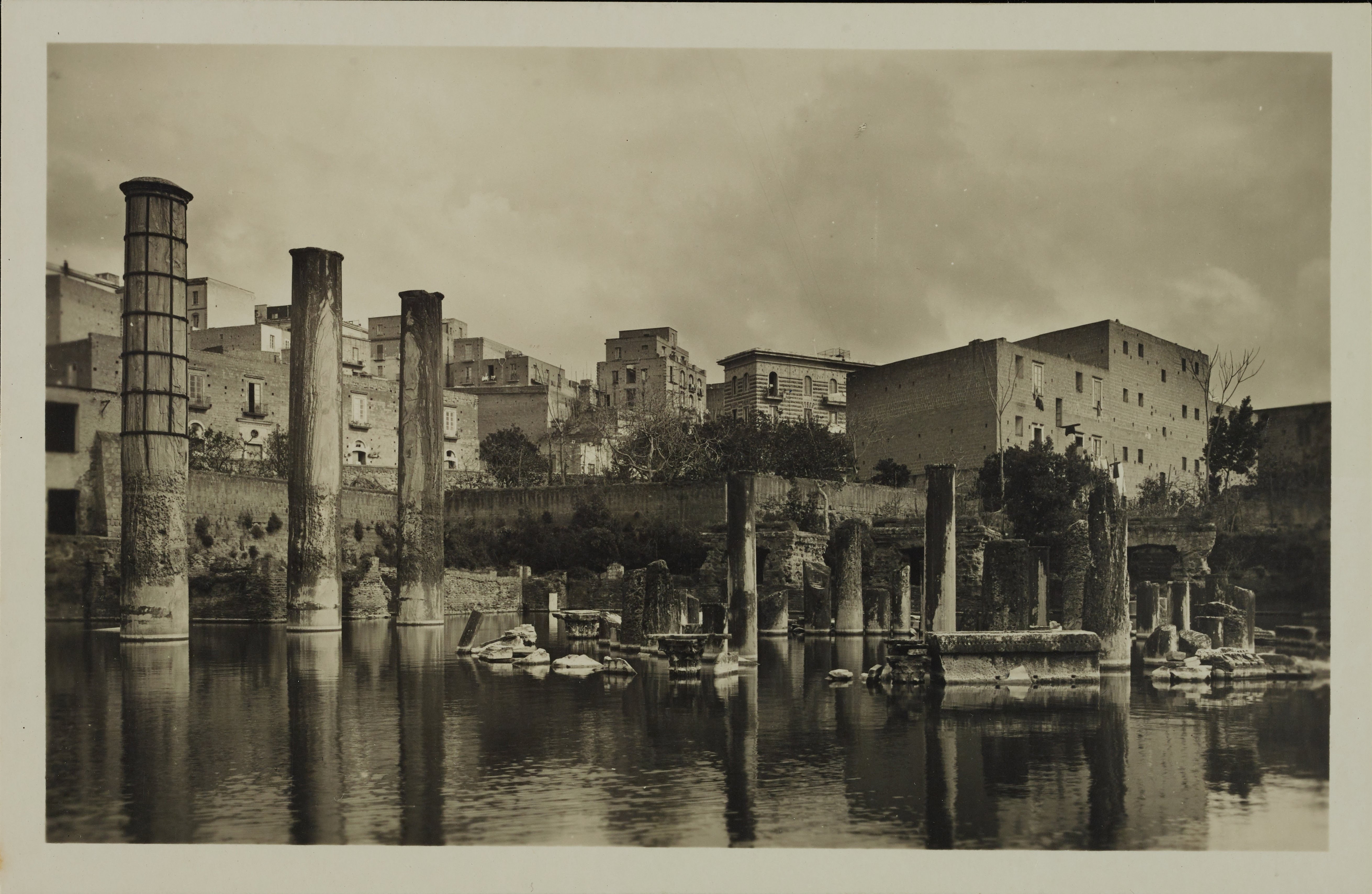 Fotografo non identificato, Pozzuoli - Tempio di Serapide o Macellum, resti di colonne durante i lavori di prosciugamento, 1901-1925, gelatina ai sali d'argento, MPI6014277