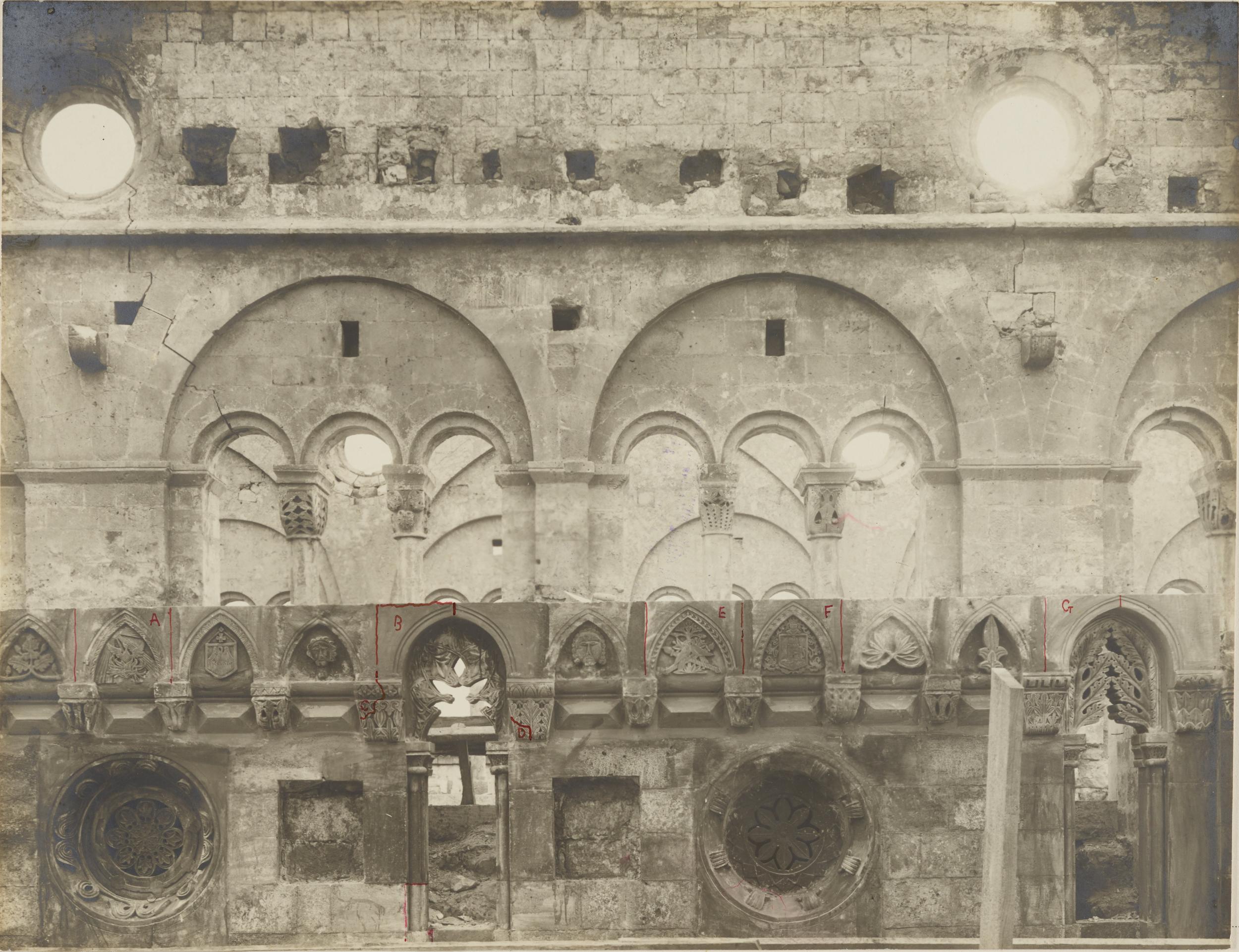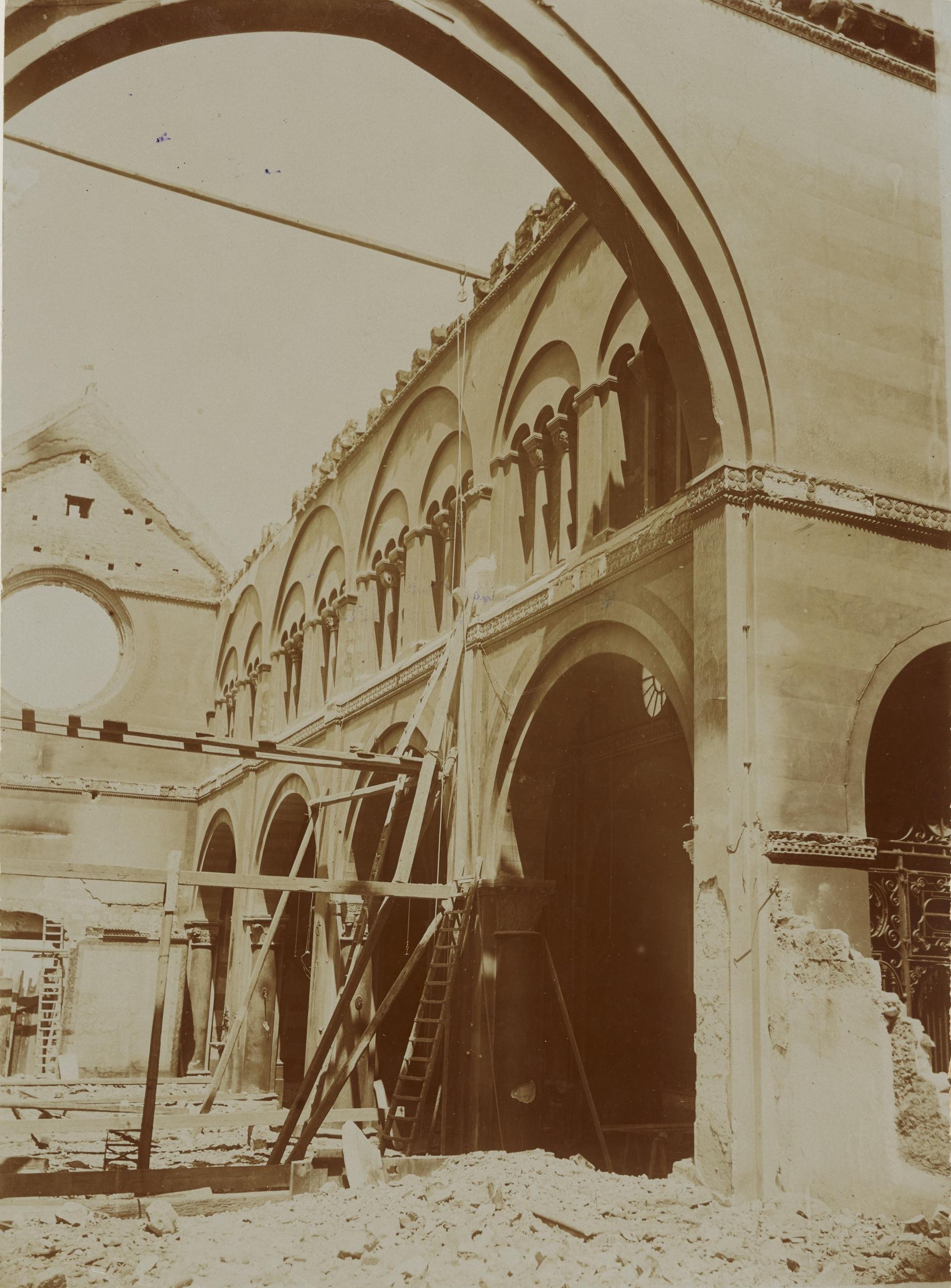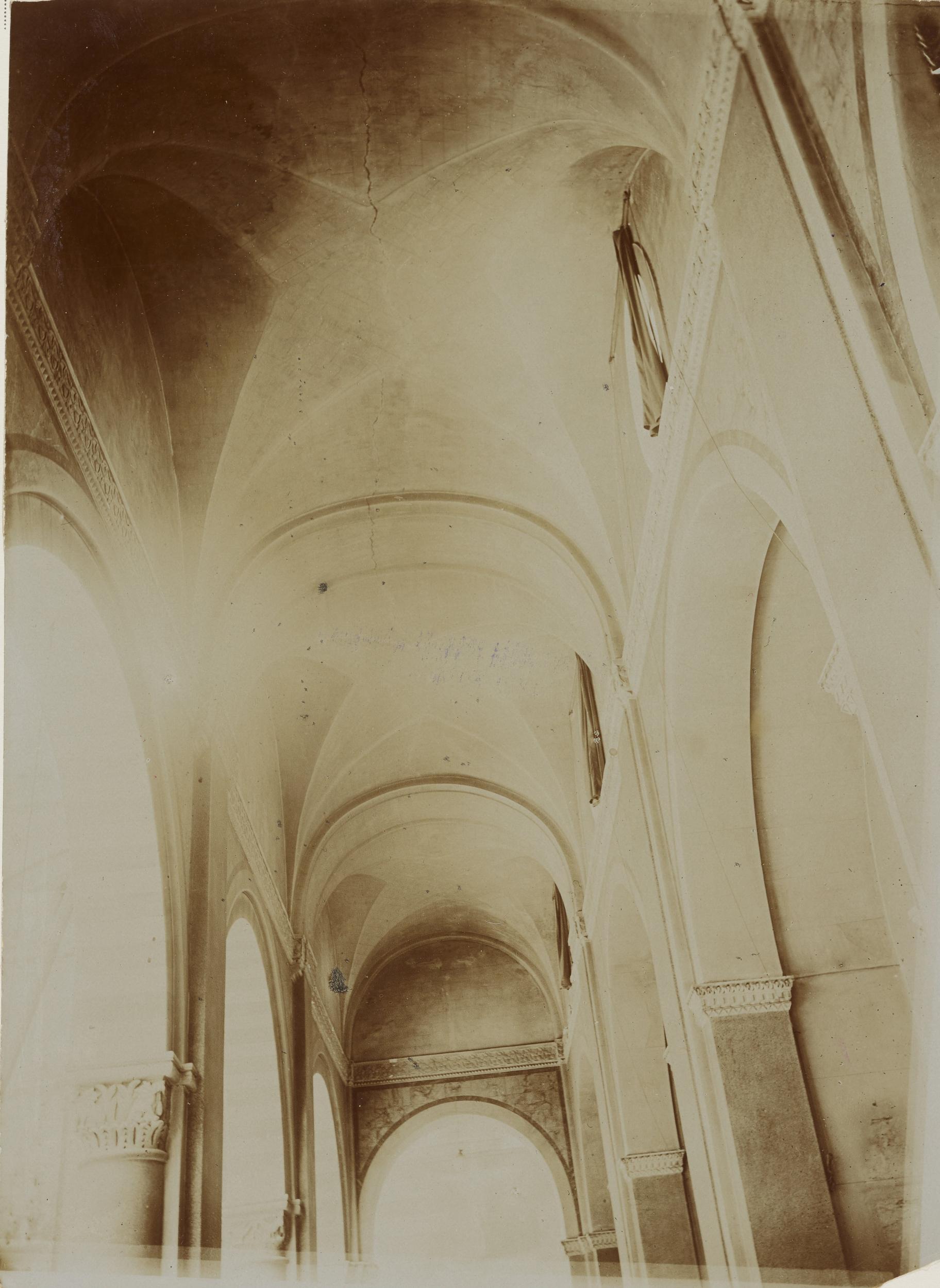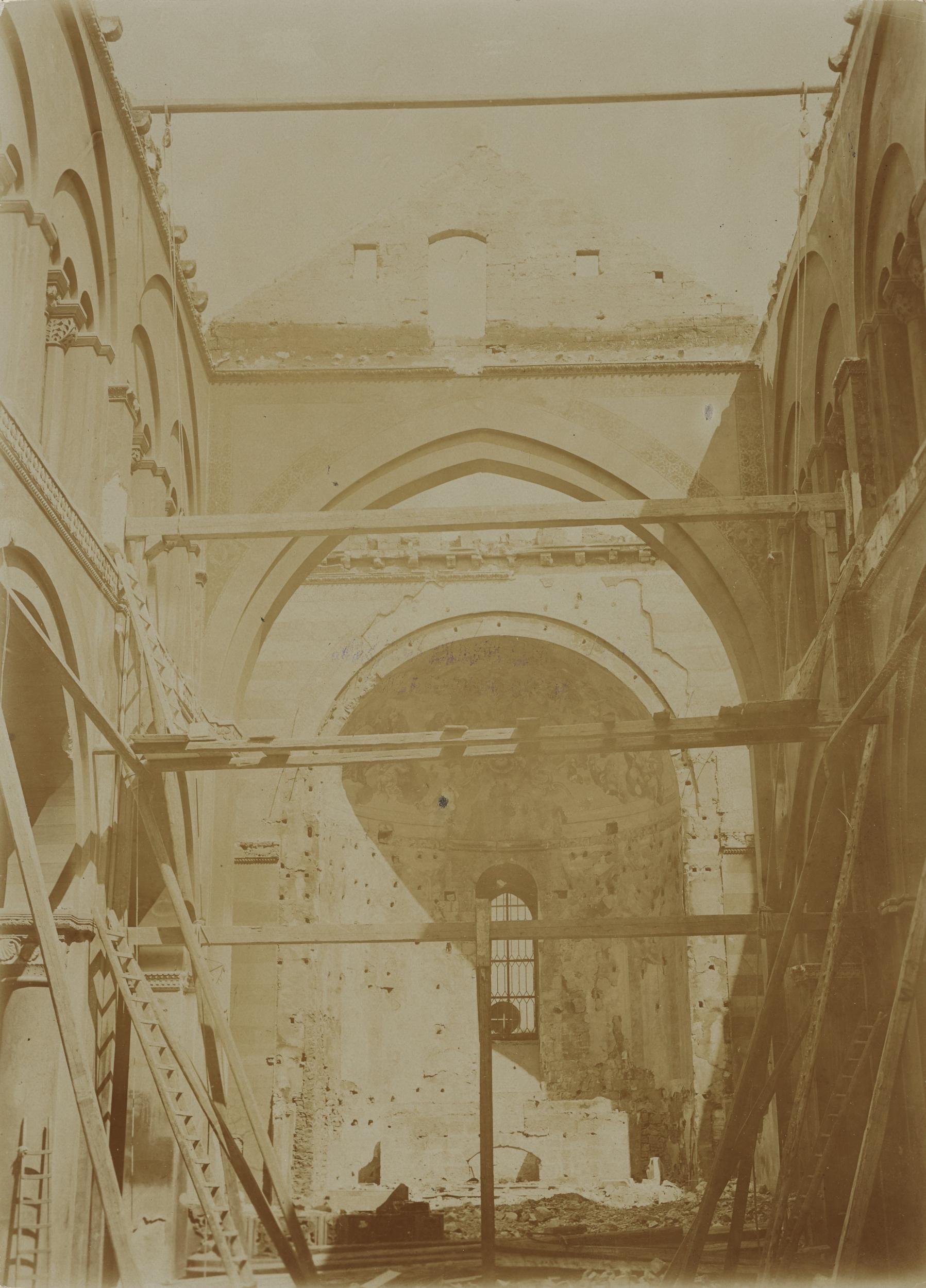 Fotografo non identificato, Conversano - Cattedrale, parete destra del transetto, dopo l'incendio del 1911, 1901-1910, aristotipo, MPI155341