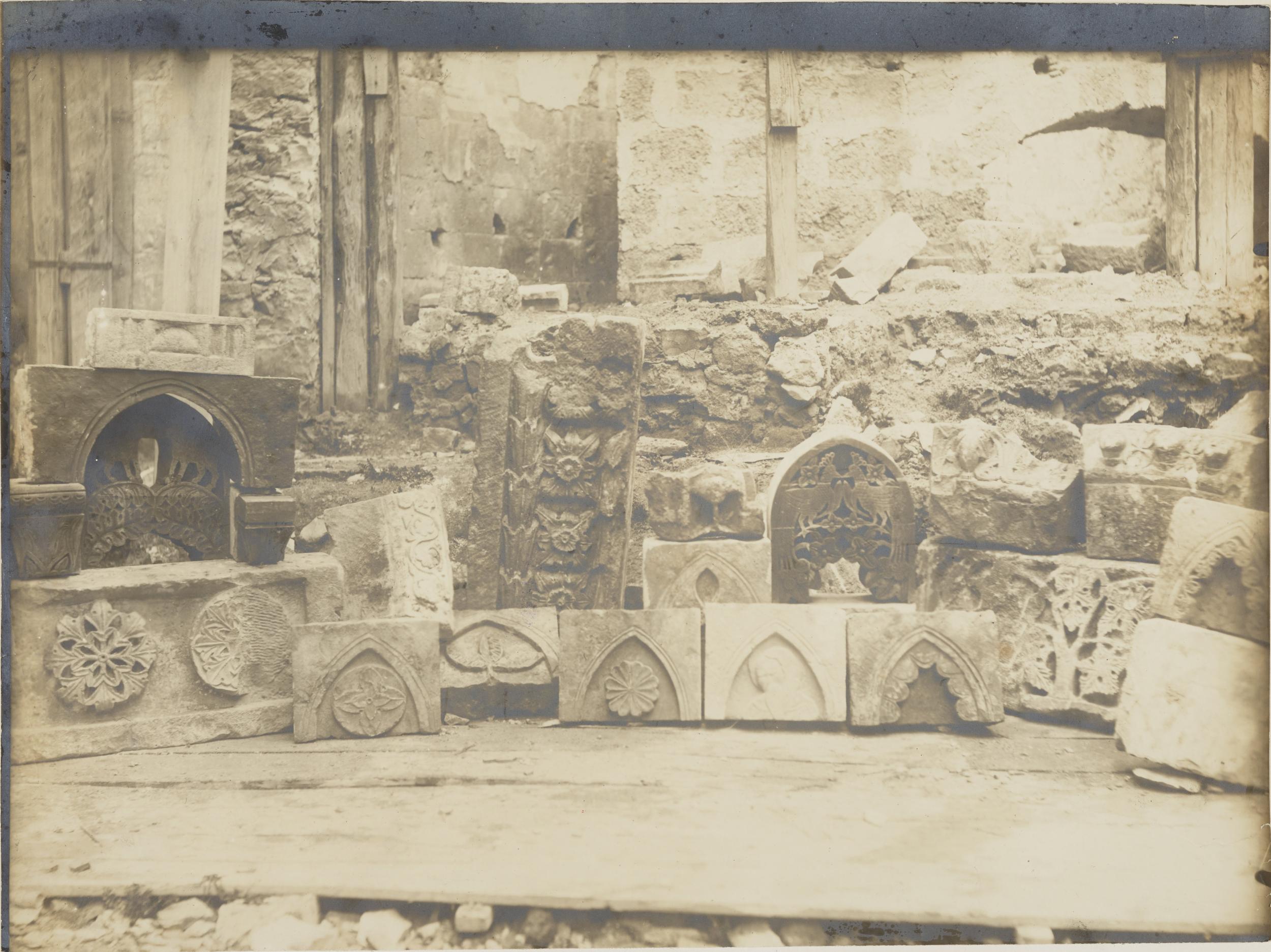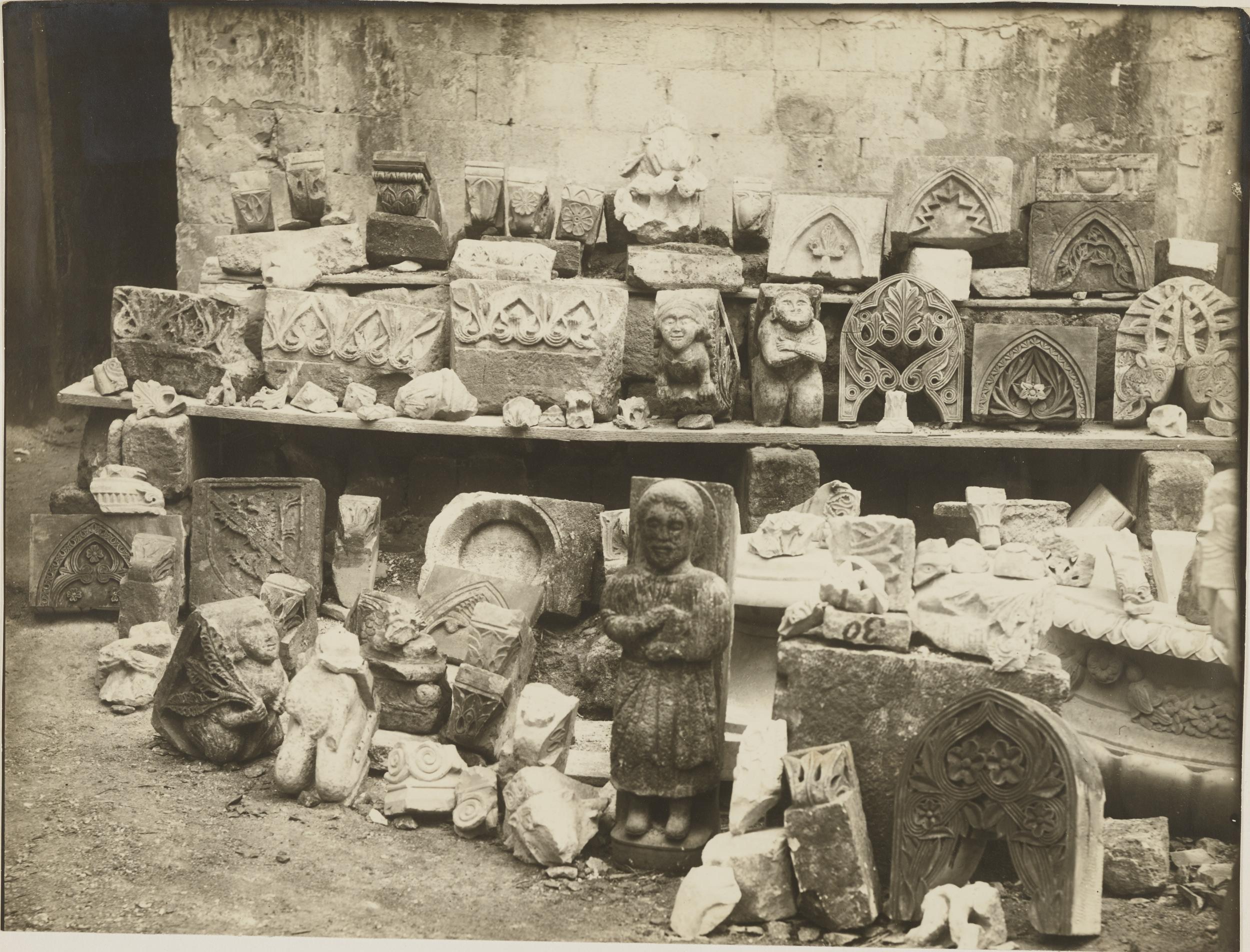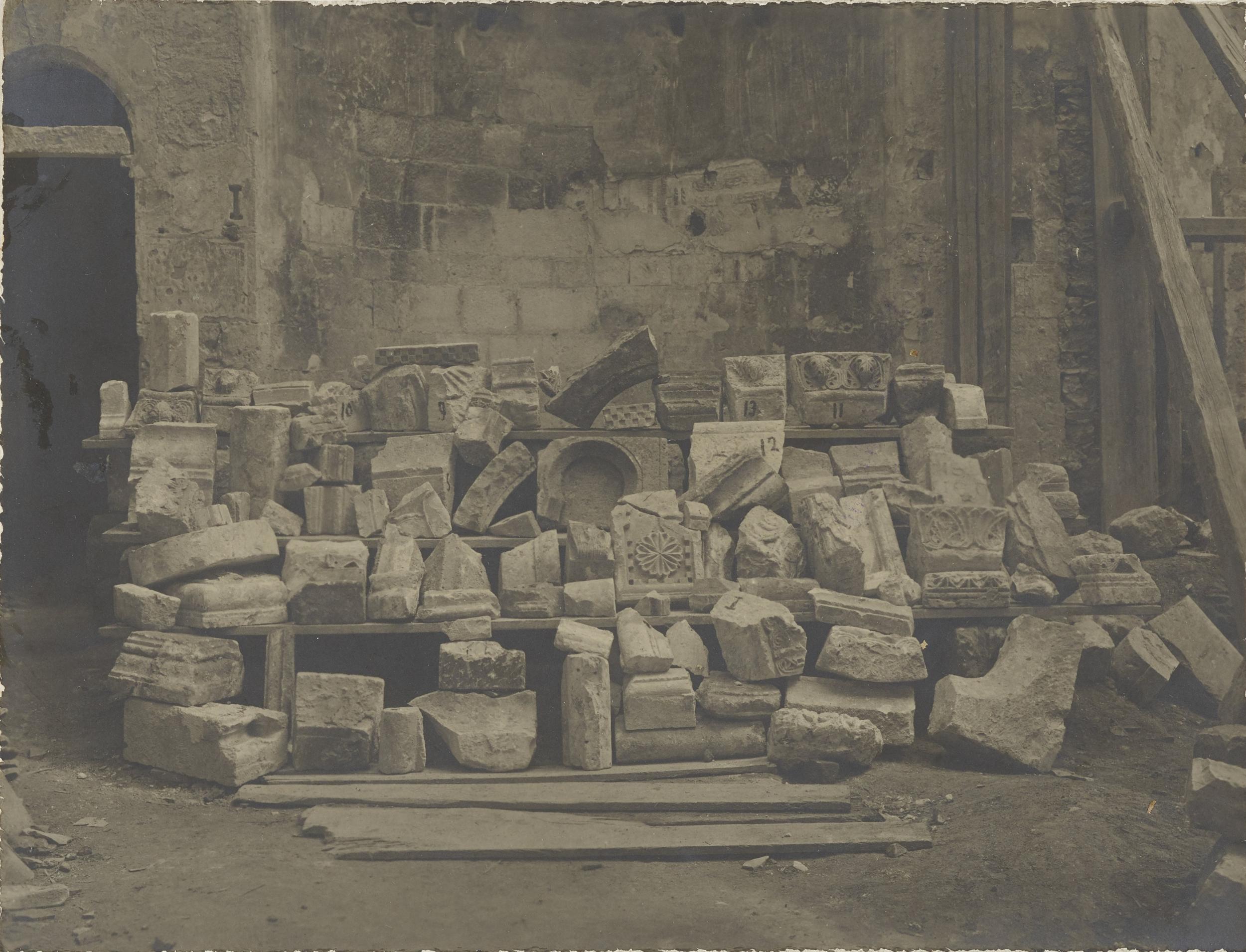 Fotografo non identificato, Conversano - Cattedrale, portale laterale, scorcio durante i restauri del 1915, 1901-1925, gelatina ai sali d'argento/carta, MPI155326