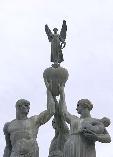 Il monumento è inaugurato il 4 ottobre 1923 ed è una delle opere meno formali realizzate in Italia negli anni 1920-1930. I soggetti coinvolti sono una Minerva italica ed un oplita nudo con spada e clipeo che suscitò l’indignazione del clero.