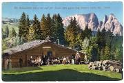 Die Selaushütte (1834 m) auf der Seiser Alm gegen den Schlern (2564 m). Tirol.