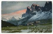 Brogles-Alpe (2155 m) mit Geislerspitzen (3027 m). Tirol.