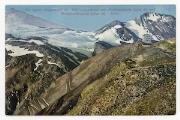 Die letzten Serpentinen der Stilfserjochstrasse mit Ferdinandshöhe (2760 m) und Dreisprachenspitze (2843 m). Tirol.
