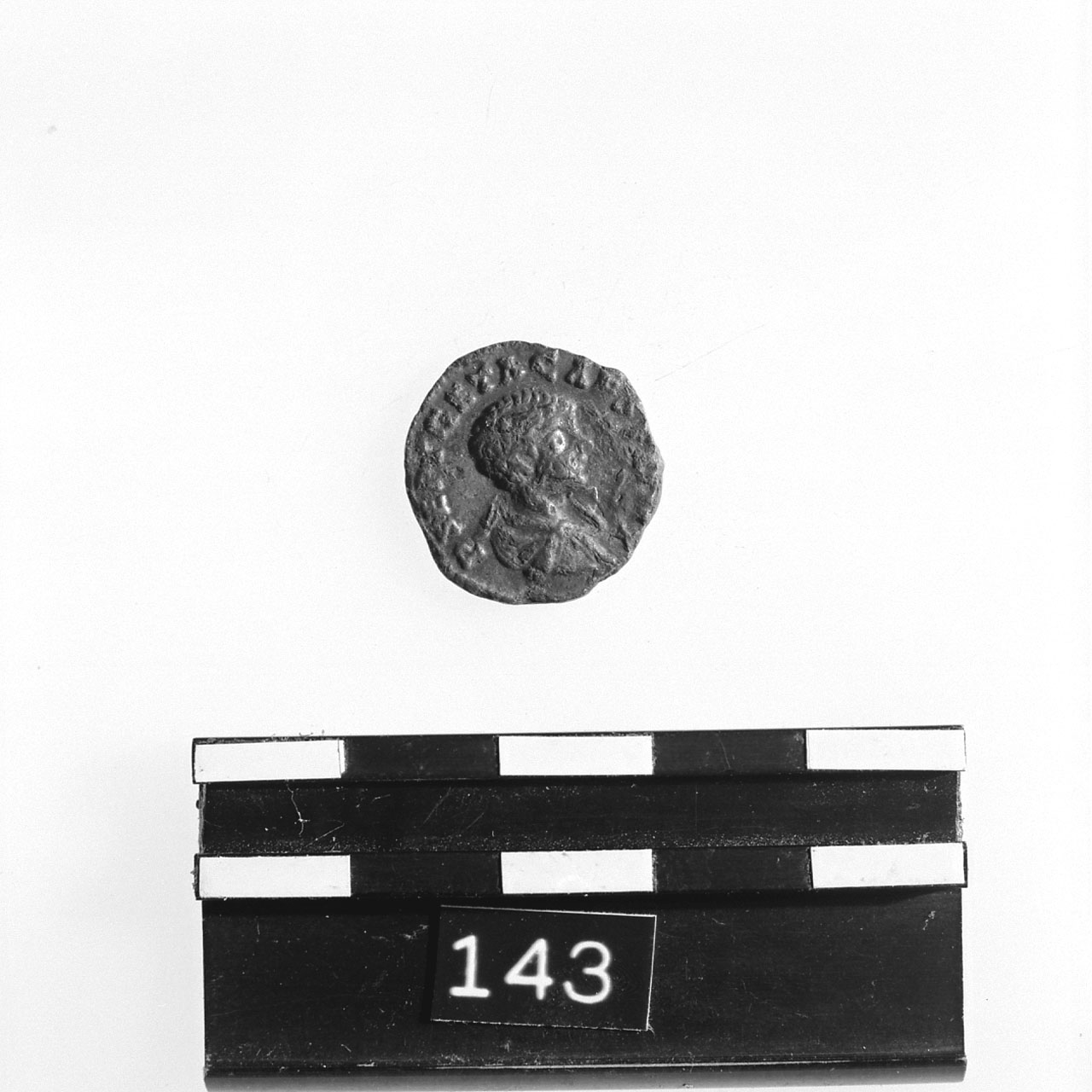 D/ P SEPT GETA CAES PONT; busto drappeggiato e corazzato di Geta a d. con||testa nuda; c.p. R/ VICT AET E RN; Vittoria in volo a s., pone||una corona su uno scudo posto su una piccola base; c.p