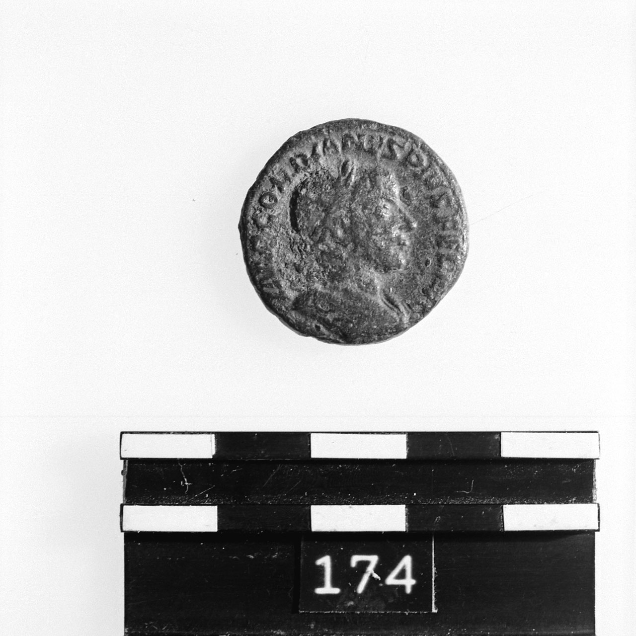 D/ IMP GORDIANVS PIVS FEL AVG; busto laureato, drappeggiato e corazzato||di Gordiano III a d.; c.p. R/ LAETITIA AVG N; Laetitia stante a||s., con corona nella d. e ancora nella s.; ai lati, S C; c.p