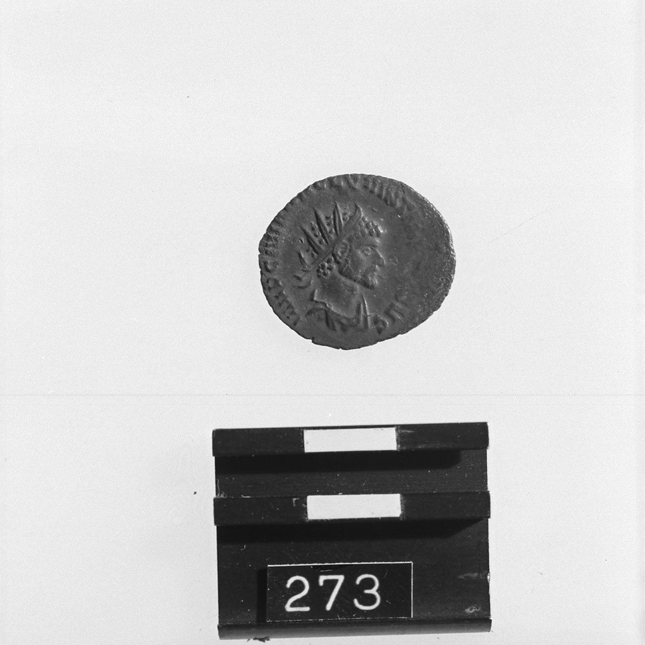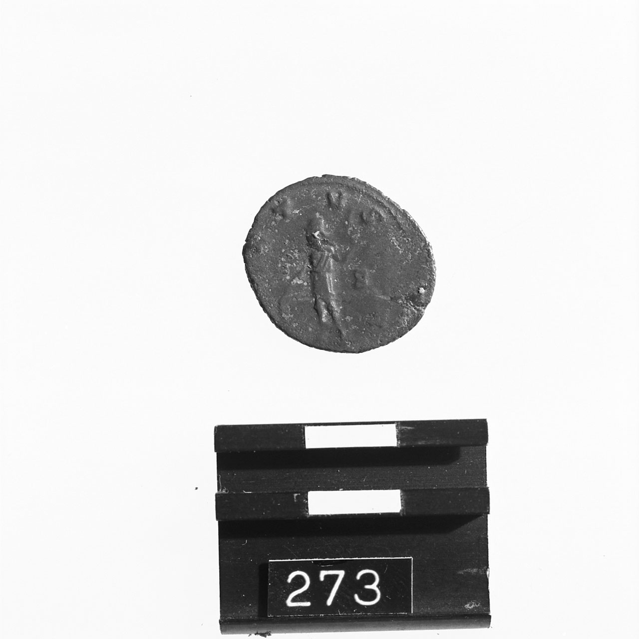 D/ IMP C M AVR CL QVINTIL[LVS] AVG; busto radiato e drappeggiato di||Quintillo a d. R/ [VI]RTVS [AVG]; soldato stante a s., con lancia||nella s. e la d. su uno scudo; a d., B; c.p