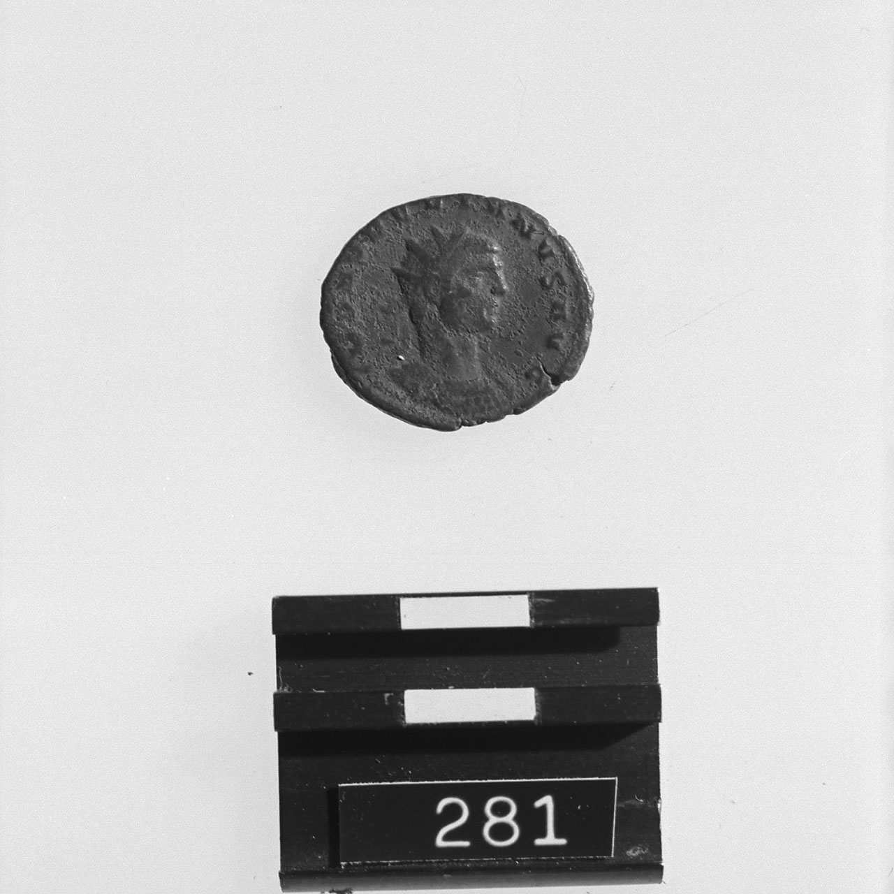 D/ IMP AVRELIANVS AVG; busto radiato e corazzato di Aureliano a d.; c.p.|| R/ FIDES M[IL]ITVM; Imperatore stante a d. riceve il||globo da Giove stante a s., con scettro nella s.; sotto, C *; c.p