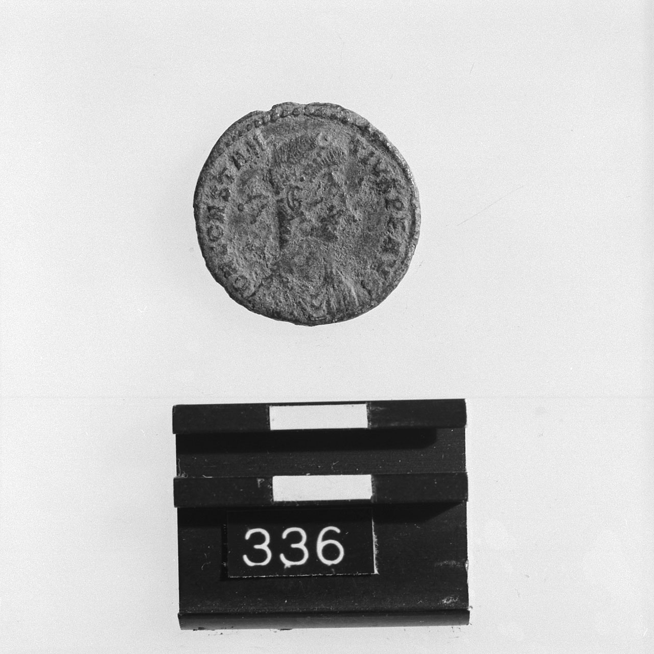 D/DN CONSTAN TIVS PF AVG; busto diademato corazzato e drappeggiato di||Costanzo II a d. R/FEL TEMP REPARATIO; imperatore in abiti||militari su prua a s., con fenice su globo nella d. e stendardo nella||s.; dietro, Vittoria; in es., PL[ - - ]; c.p