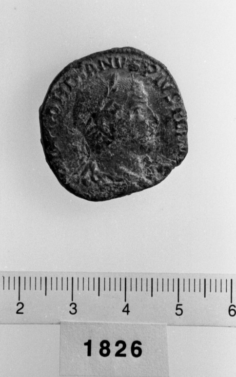 D/ [IMP G]ORDIANVS PIVS FEL A[VG] Busto laureato,||drappeggiato, di Gordiano III, a d. Bordo di punti.||R/ [L]IBERTA[S AVG] Libertas stante a s., con||pileo nella d. e lungo scettro. Ai lati: S-C.||Bordo di punti
