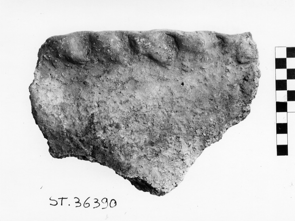 frammento di vaso con orlo piatto e parete rettilinea con cordone plastico, o impressioni digitali