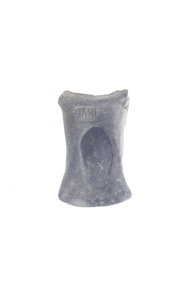 Frammento di beccuccio a punta svasata e taglio arratondato. Il foro per lo stoppino è ovale e allungato. Tra il foro e l'attacco alla spalla è impresso il bollo le cui lettere a rilievo sono rivolte verso il disco. Il beccuccio apparteneva ad una lucerna del tipo Esquilino 2, databile tra 150 e 50 a.C. Il beccuccio fa parte di un gruppo di lucerne aquileiesi tipo Esquilino 2 che presentano alcune il bollo CCALI/TIBVR, altre TIBVR/ CVIBI databili al 30-20 a.C