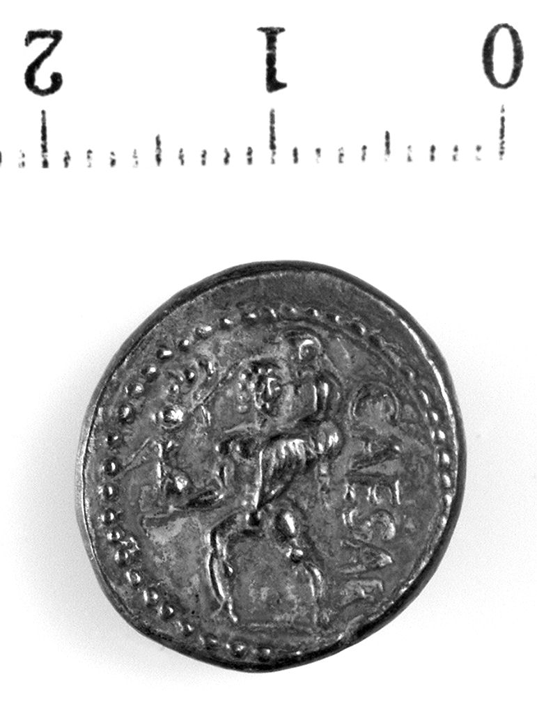 D/ Testa diademata di Venere a d. R/ Enea in fuga a s. mentre trasporta il padre Anchise e il Palladio