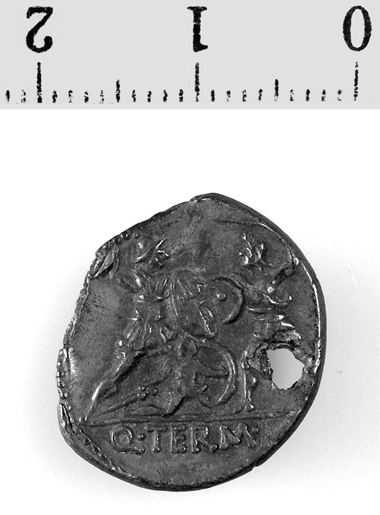 D/ Testa di Marte con elmo piumatoa s. R/ Combattimento tra guerriero romano e barbaro; al centro guerriero caduto