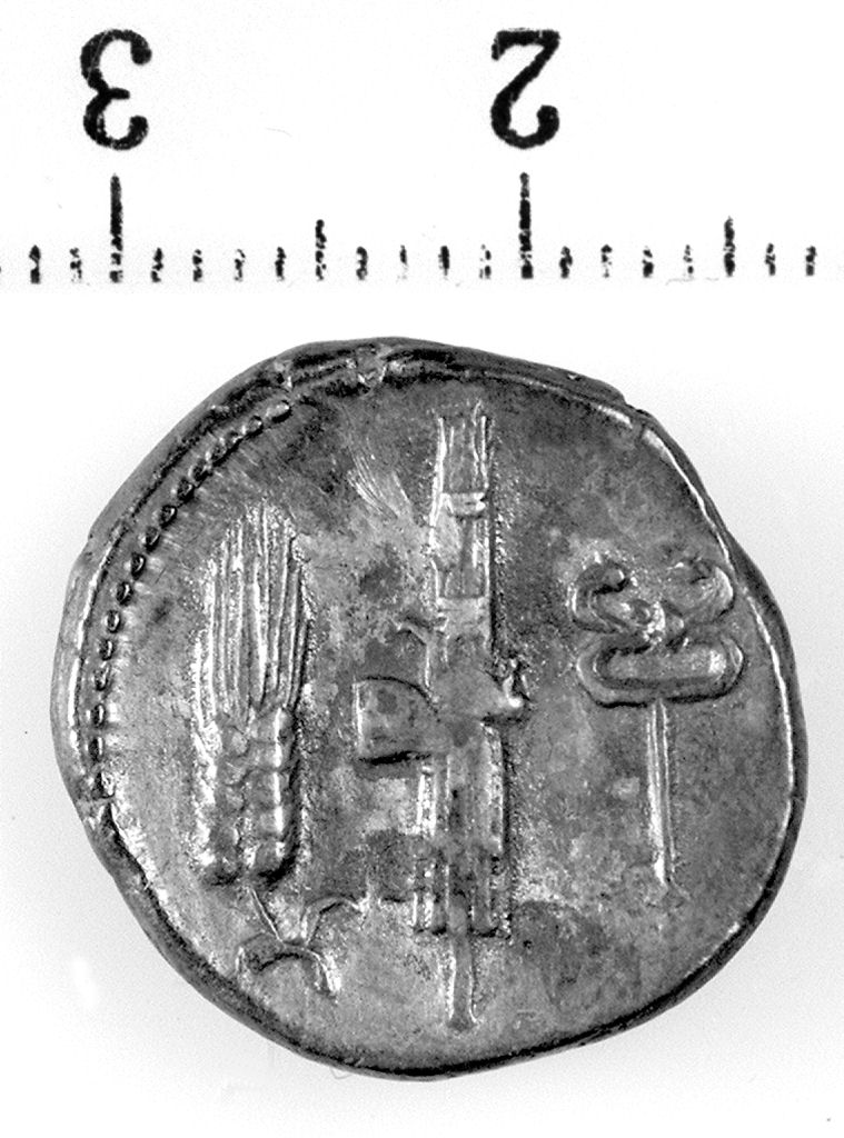 D/ Testa diademata di Venere a d. R/ Spiga di grano, fascio di verghe, scure
